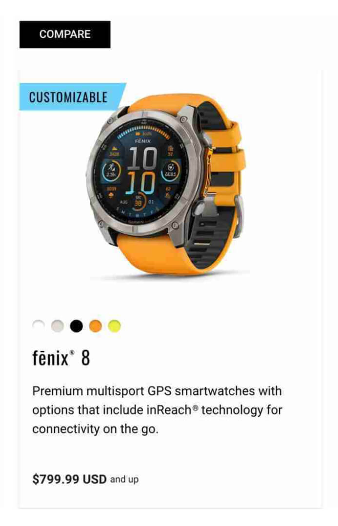 Na americké verzi webu Garminu se krátce objevil marketingový text, který označoval Fenix 8 jako „prémiové multisportovní GPS hodinky s volbou obsahující inReach® technologii pro spojení na cestách“. Tento popis okamžitě vyvolal bouřlivou debatu, protože současný Fenix 8 nemá vestavěnou satelitní komunikaci inReach. Podporuje pouze InReach Remote, tedy možnost ovládat externí zařízení inReach (např. Mini 2, Messenger) prostřednictvím hodinek.