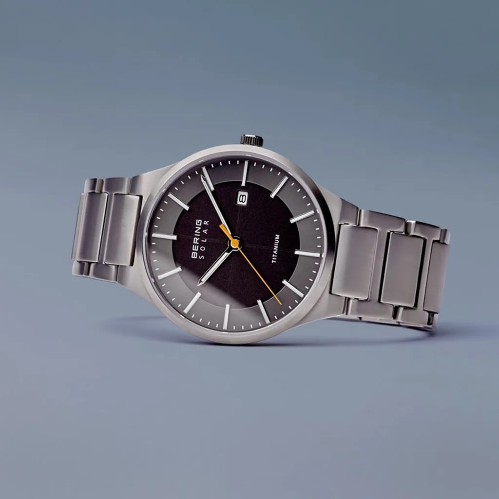 Na ciferníku můžeme kromě nabíjecího panelu najít číslice, které jsou aplikované a zapuštěné do prstence, který běží po obvodu ciferníku. Kromě čísel a ručiček se zde nachází ještě datumovka na třetí hodině. Pouzdro hodinek má průměr 40 mm a výšku 9 mm. Sklíčko je safírové, jak jsme u Beringu zvyklí. Voděodolnost je 50 metrů, s hodinkami se tedy krom mytí rukou můžete i sprchovat.