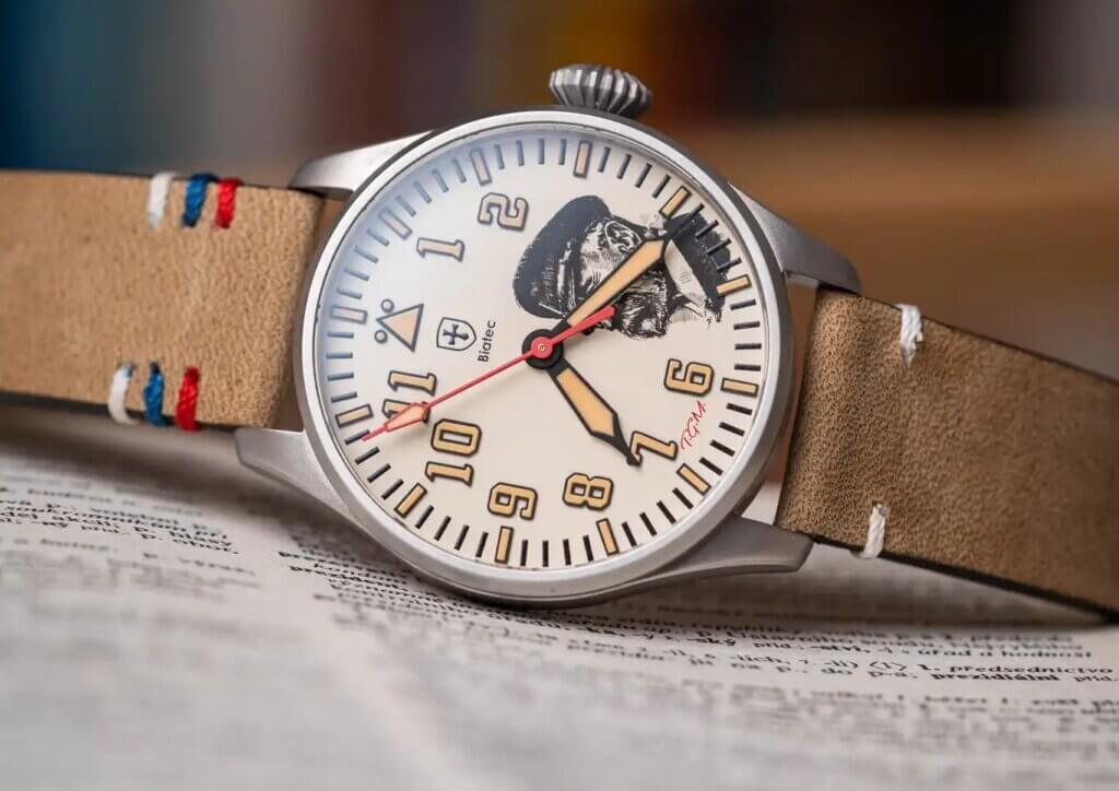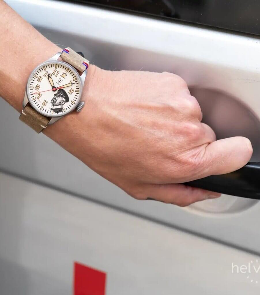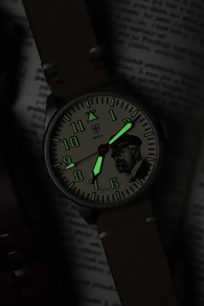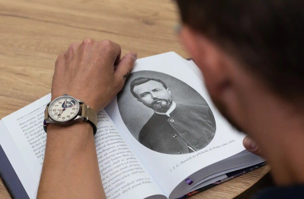 Ideály pravdy, demokracie a tradic, které osobnost T.G.Masaryka vystihují se různými formami promítají do každého detailu tohoto modelu. Hodinky mají čistý, elegantní číselník světle béžové barvy, který se nese v klasickém leteckém designu. Kromě detailní a velmi věrné podobizny prezidenta Masaryka jsou výrazným prvkem číselníku decentní iniciály mezi 6. a 7. hodinou a také červená vteřinová ručka. Symbol státnosti ztělesňuje malý, avšak nepřehlédnutelný detail v podobě výšivky na řemínku v barvách národní trikolory.