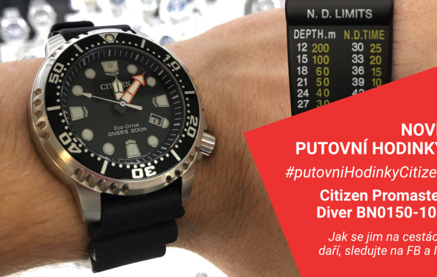 Projekt putovních hodinek píše svůj další díl a do světa tentokrát pouštíme populární potápky Citizen Promaster Diver BN0150-10E. Vše se uskuteční díky spolupráci s distributorem Citizen pro ČR, společností Goldtime. Připomínám, že v minulosti už jsme vám poslali k otestování hodinky Davosa, Traser, Junkers, Bulova a také Junghans.