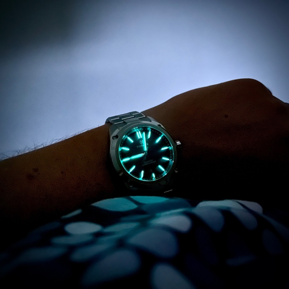 Jeden z dočasných majitelů sice zmínil, že oproti modelu Formex Reef je u Essence luminiscence slabší, nicméně Reef je potápkový model a tudíž se to dá snadno pochopit. Fotky uživatele “Lukáš3” však hovoří jasně – luminiscence Formex Essence FortyThree Automatic je dostatečně zářivá.