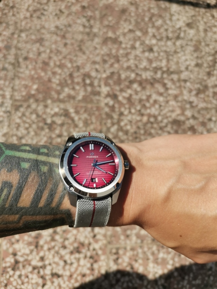 Co bylo mezi členy hodně populární byl skvěle zpracovaný červený číselník. Ten naplno ukazuje jednu ze silných stránek Formex a to především na slunci. Ostatně na každém druhu světla našli testeři nějaký jeho skrytý odstín a dosud nenalezenou krásu. Chválena byla i luminiscence, která zvyšuje přehlednost hlavně za tmy, nebo horších světelných podmínek.
