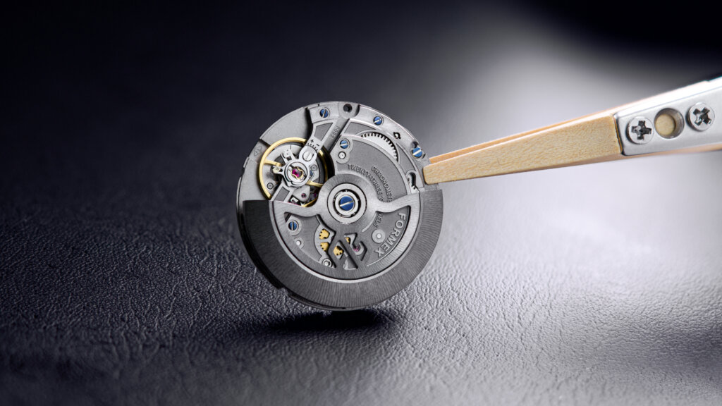 Uvnitř Dark Matter tiká automatický kalibr Soprod Newton P092. Ne, není to in-house strojek. Přesto je to ale strojek, který v hodinkách jiných výrobců neuvidíte – byl totiž vyrobený ve spolupráci s Formex a jen a pouze pro hodinky Formex.