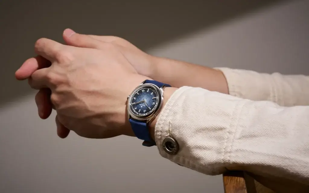 Model Ancestra tedy zkrášluje tmavě modrý smaltovaný ciferník, a to smaltovaný metodou Grand Feu – metodou velkého plamene. Za ciferníky stojí čínský umělec Kong Lingjun. A jen tak pro představu proč takovéto ciferníky dnes vyrábí málokdo: každý druhý vyrobený skončil v koši, ať už kvůli prasklinkám nebo jiným problémům. Minimálně s takovouto mírou chybovosti je u smaltu prostě nutné počítat…
