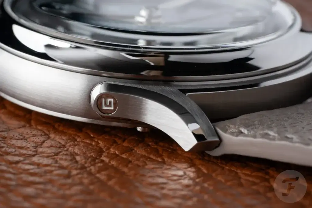 Tím nejzajímavějším na celém designu, za kterým stojí dvojka Sifan Guo a Alfred Chan, jsou ale nožičky. Nožičky má totiž Ancestra nejen příjemně zahnuté, ale hlavně šroubované a tak i od pouzdra oddělitelné. Šroubovaná ale není každá nožička sama o sobě, jako u jiných modelů, ale dvě nožičky jsou vzájemně propojené (rozpětí pro řemínky je mimochodem klasických 20 mm). Hodinky díky tomu mají unikátní, ale zároveň i čistou a elegantní siluetu.